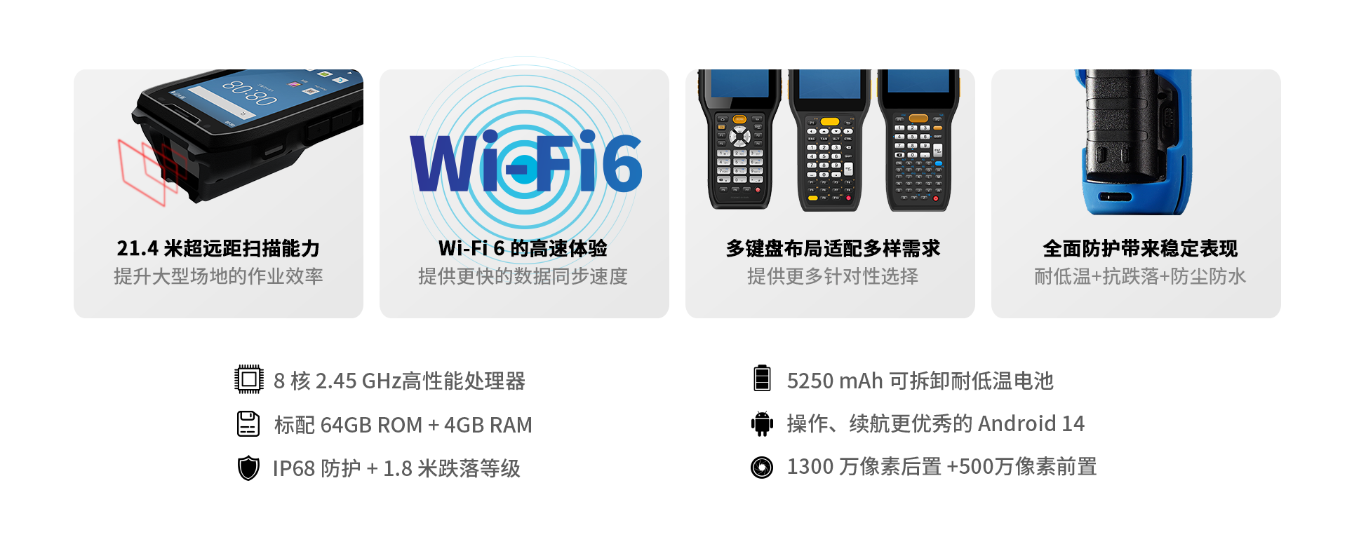 键盘 | 版本1共34键:正面键*29,侧面扫描键*2,侧面音量±键*2,侧面自定义键*1; 版本2共43键: 正面键*38,侧面扫描键*2,侧面音量±键*2,侧面自定义键*1; 版本3共52键: 正面键*47,侧面扫描键*2,侧面音量±键*2,侧面自定义键*1; |