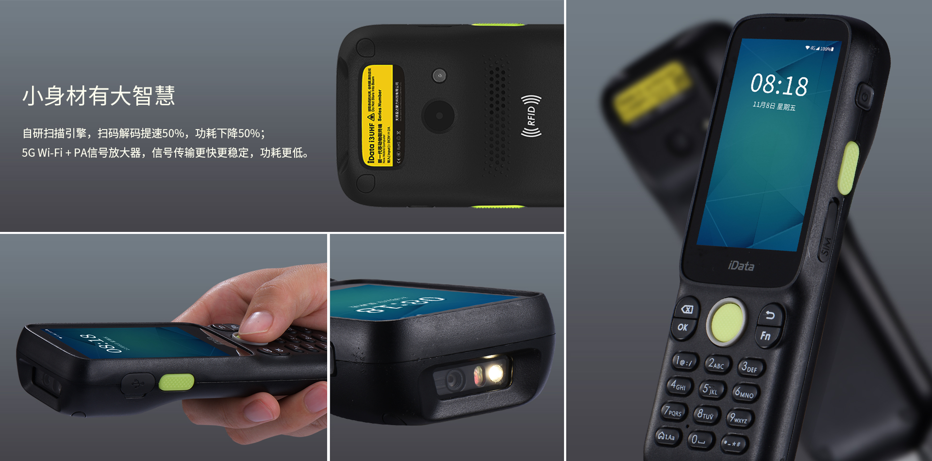 键盘 | 共24键,正面键*21,侧面扫描键*2,侧面电源键*1 |